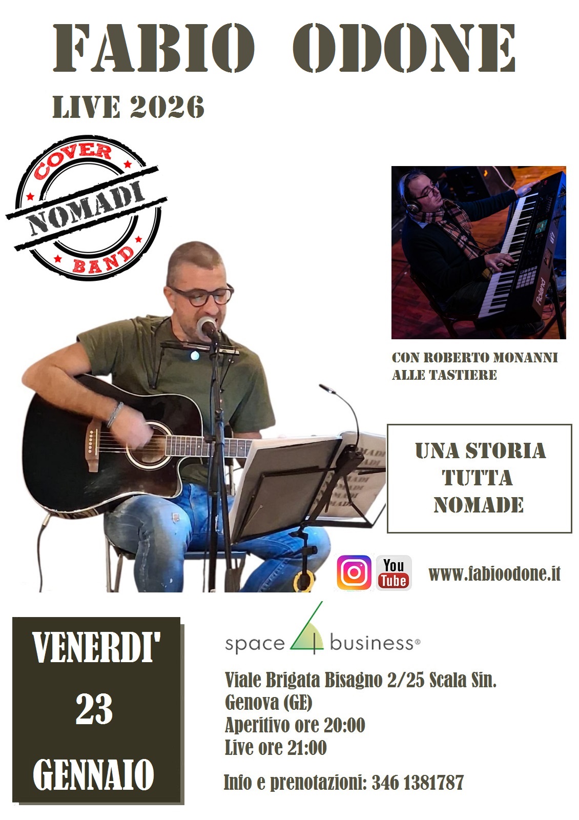 Venerdì 23 Gennaio 2026, aperitivo ore 20:00, live ore 21:00.